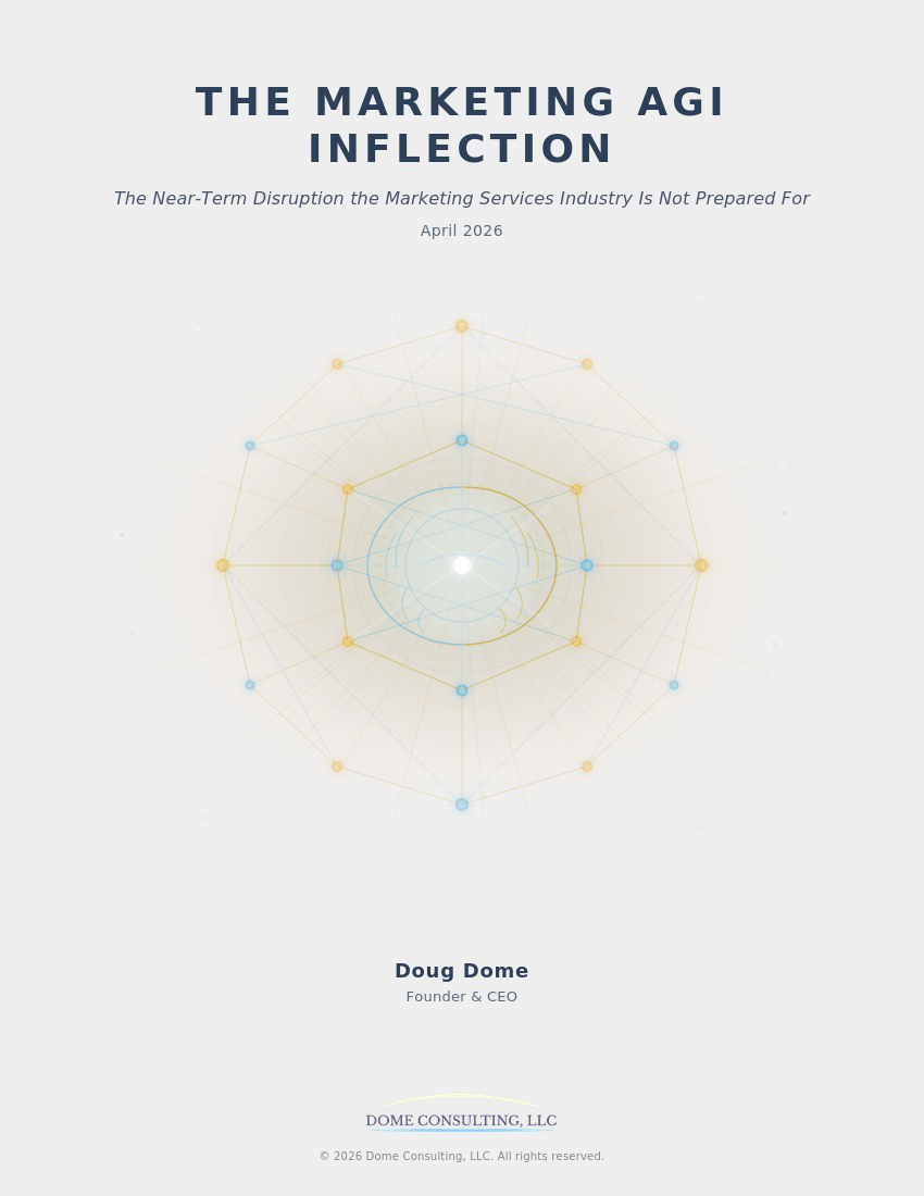 Artificial intelligence is not just adding efficiency to agency workflows. It is changing the structure of the marketing services industry itself, from agency economics and talent models to service delivery, competitive advantage, and enterprise value. This paper offers a practical perspective for private equity firms, agency owners, and industry leaders seeking to understand what comes next. It also advances a central idea from Doug’s long-running point of view: that the most valuable asset a modern brand or agency may increasingly be its autonomous marketing intelligence system.